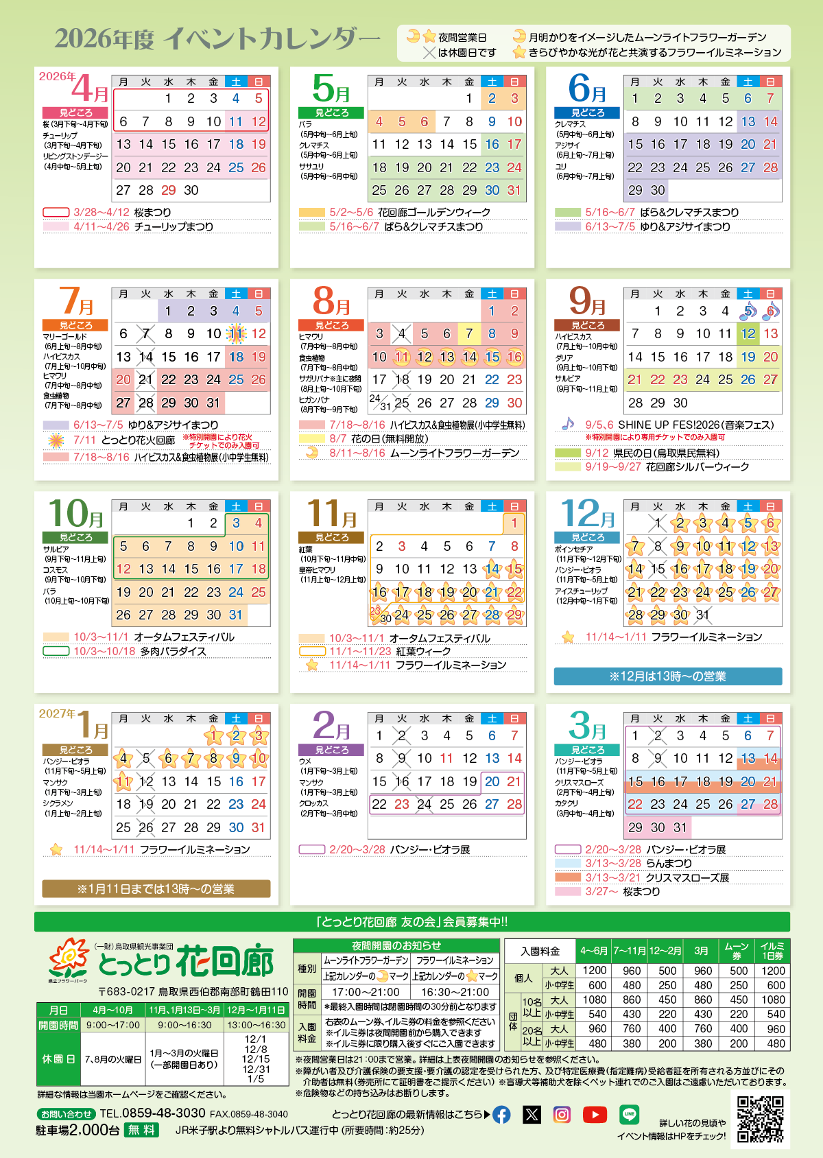 ★夜間営業日(ムーンライトフラワーガーデンやイルミネーション開催日)は午後9時まで開園いたします。