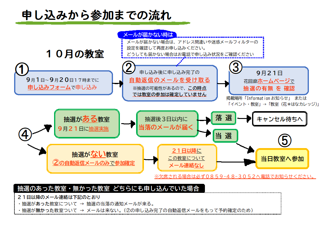 花*はな*カレッジ係 電話: 0859-48-3052 ※電話での申し込み受付は行っておりません。